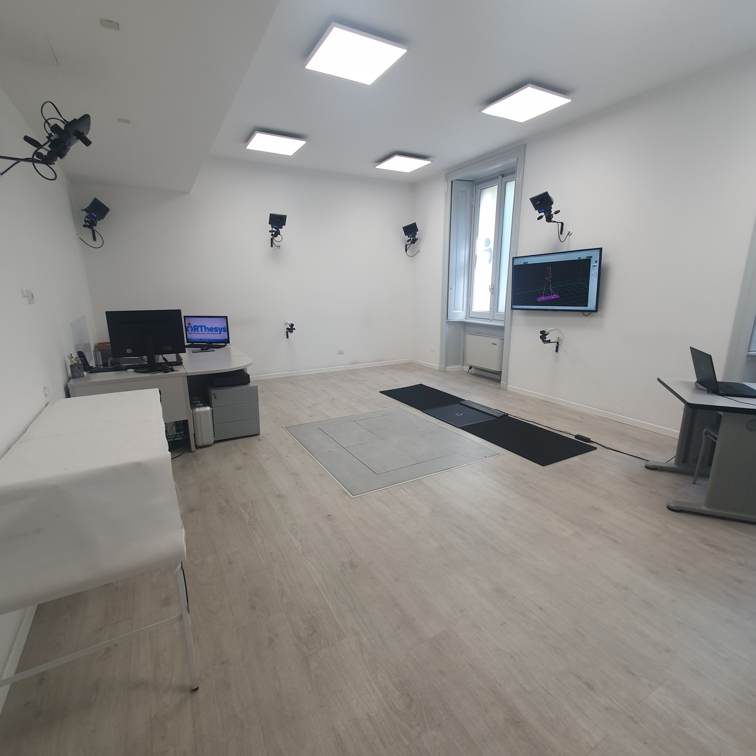 Il laboratorio di Gait Analysis di Orthesys è provvisto di un sistema optoelettronico composto da 8 telecamere e 2 pedane dinamometriche in grado di esaminare con precisione i movimenti e gli atteggiamenti di ciascun segmento del nostro corpo (tronco, bacino, anca, ginocchio, caviglia, piede) nello spazio e nel tempo.